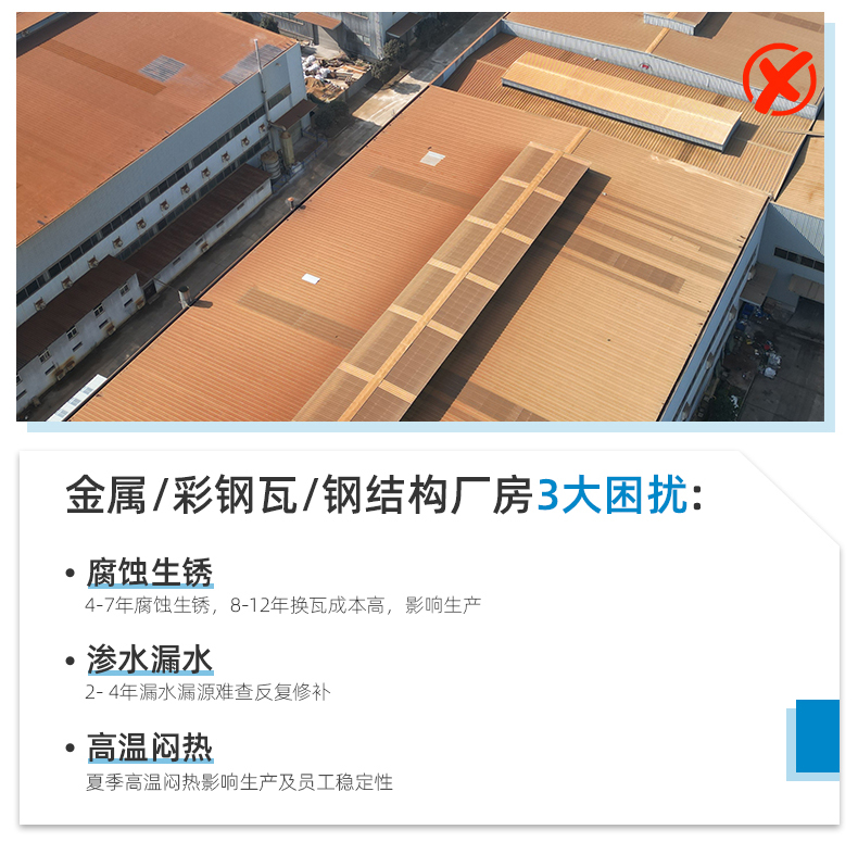 一體化解決廠(chǎng)房【生銹.滲漏.室內(nèi)高溫悶熱】三大難題